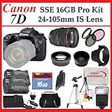 Canon EOS 7D Digital SLR Camera w/ Canon Zoom Wide Angle-Telephoto EF 24-105mm f/4L IS USM Autofocus Lens + 16GB SLR Accessory Camera Package Overview:
